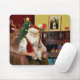 Papais noeis em casa com o seu ruivo Cairn Terrier, relaxando em frente a um fogo aconchegante antes da grande noite. (Notem Mona Lisa sobre a manta.)