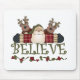 Papai Noel e sua rena adoram essas bonitas cartas de cartões de natal, canecas, sacos de tote, T-shirts, e outros itens e texto diz "Acredite"! Você pode personalizar esses Papais noeis e itens de feriados de Reindeer usando a ferramenta de personalização fácil.