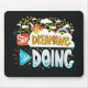 Uma citação "Pare de Sonhar Começar a Fazer" colorida e bonita com arco-íris, estrelas e cabeça de unicórnio.