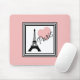 Ilustração Paris com Torre Eiffel e decoração cardíaca em quadrados brancos e pretos em fundo rosa