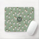 Esta charmosa almofada de rato da Parson / Jack Russell Terriers apresenta 13 JRTs/PRTs ilustradas com várias marcas de cabeça e corpo castanho e preto mais 13 bolas de tênis espalhadas aleatoriamente dispostas em um padrão de gota num fundo verde de sábio personalizável - cada um dos cães está de pé com uma inclinação adorável da cabeça, disposto a lançar uma das bolas - personalize com um monograma personalizado -Jack Russell Terriers com tênis bolas © katz_d_zynes 2020