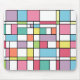 Este mouse pad tem uma design Bauhaus em cores Páscoas de roxo, amarelo, laranja, rosa, azul e verde. Bonito e festivo para a estação.