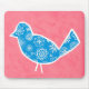 Mousepad Pássaro Decorativo com Padrões em Fundo Rosa