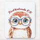 Adorável coruja balançando óculos enormes e charme geeky.