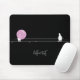Pasta de rato de pombo-Quirky apresentando duas aves engraçadas num fio preso com varas de bublegum mastigado. Um pássaro soprando uma grande bolha rosa, outro pássaro pisando em chiclete. Use o modelo de texto fácil para adicionar um nome, um monograma, iniciais ou um ditado engraçado. Edite para alterar o fundo preto para qualquer cor que desejar. ♡ Idyllfire