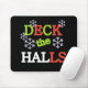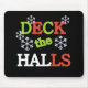 O texto vermelho, verde e branco com flocos de neve brancos diz "Deck the Halls" em T-shirts de férias, sacos de tote, canecas, ímãs e muito mais.