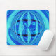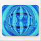 Design abstrato fantástico em tons de azul com uma órbita reflexiva e brilhante sobre um fundo giratório. Mousepad com um design personalizável para você personalizar com seu próprio texto, imagens e ideias. Criado com uma fotografia original e técnicas digitais por Jess Perry.