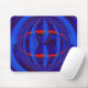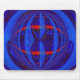 Design abstrato fantástico em tons de azul e vermelho, com uma órbita reflexiva brilhante sobre um fundo giratório. Mousepad com um design personalizável para você personalizar com seu próprio texto, imagens e ideias. Criado com uma fotografia original e técnicas digitais por Jess Perry.
