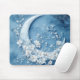 MOUSEPAD PASTEL BLUE CRESCENT MOON WITH WHITE FLOWERS