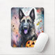 Mousepad Pastor Belga Halloween Com Pumpkins Assustado