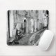 Pasta de fotos com um patinete vintage estacionado em frente a uma casa em uma rua de pedra angular em uma cidade na Itália, a preto e branco na moda.