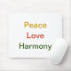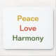 Paz Amor Harmonia. Este é um ditado simpático para uma saudação de estação ou qualquer época do ano. Design de minimalista de ouro verde-vermelho.