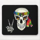 Dê a paz uma possibilidade com este crânio com headband psicadélico e os olhos flamejantes que sustentam um sinal de paz. Este design da paz pode ser encontrado em artigos do roupa, etiquetas, canecas, ímãs, cartões e mais.