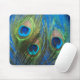 Esta fotografia de uma pena de pavão azul foi tirada com uma lente de olho de peixe. Estas três penas têm uma bela cor e fazem uma ideia de presente de excelente. O fundo azul mostra as cores nos olhos da pena de pavão.