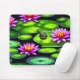 Um Sapo giro e divertido que repousa em lindas almofadas de lírios coloridas.