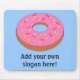 Adicione um slogan ou nome para criar um presente personalizado com um tema de rosquinha. Imagem mostra uma rosquinha cor-de-rosa com aspersores de açúcar, para deleitar qualquer um com um dente doce!