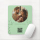 Bring harmony to your workspace with our 'Working to Our Rhythm' personalized mouse pad. This design features a minimalist botanical aesthetic in a soft sage green, with delicate leafy branches framing your favorite circular photo.