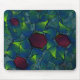 Mousepad pétalas virtuais azuis, folhas e hexágono vermelho
