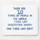 Piada binária - computador relativo. "Há 10 tipos de pessoas no mundo, daquelas que compreendem o binário, e daquelas que não fazem"