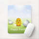 Ilustração de Páscoa cúbica: pintinho pequeno eclodiu de um ovo e sentado ao lado das cascas de ovos quebradas.