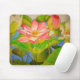 com design de arte original de pintura aquosa de Sacha Grossel de lírio sereno e paisagem lotus com flores aquáticas cor-de-rosa e branca e lírios verdes tropicais sentados num lago legal, azul. Esta design detalhada, brilhante e colorida inspira-se em temas tropicais para amantes de flores botânicas em todos os lugares.