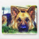 Este painel do mouse tem uma pintura de um German shepherd pintado nele.