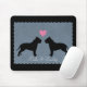 Duas silhuetas Pitbull no amor e compartilhando um coração. Personalizar texto para um toque personalizado.