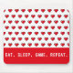 Este tapete de mouse ao estilo retrô faz um presente de excelente para amantes de jogos. O design apresenta um padrão cardíaco vermelho estilo pixel de 8 bits com o texto "comer. dormir. repetir". A redação pode ser alterada para algo de sua escolha, se preferir.