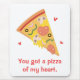 Um humor fofo para dizer ao seu querido o quão especial ele ou ela é para você. A design é acompanhada de uma fatia de pizza com toques como pepperoni, pimenta verde e fatias de cebola, azeitonas pretas, cogumelos e bastante queijo! O pepperoni tem a forma especial de um coração e há pequenos corações em volta da pizza também. A legenda divertida e romântica diz: "Você tem uma pizza do meu coração." que é um substituto para a peça. Excelente por Dia de os namorados ou qualquer outra ocasião romântica de amor.