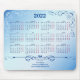 Mousepad com um calendário para 2022. Na moda azul Padrão calendário 2022 com o número da semana útil. Personalize este item para ajustado de suas necessidades e desejos. Adicione seu telefone, site e e-mail.