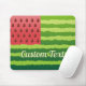 Bandeira de melancia vermelha e verde com listras e sementes. Texto personalizado.