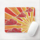 Um sol dourado e laranja se põe e o vento sopra nuvens vermelhas e rosa através do céu. Mousepad com um design personalizável dourado, laranja, vermelho, rosa e branco para você personalizar com seu próprio texto, imagens e ideias. Um lápis de cor original e desenho de tinta metálica de Jess Perry.