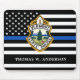 Mouse Pad do Departamento de Polícia de Linha Azul - bandeira americana em cores da Polícia, design azul e preto moderno. Personalize com o logotipo do seu departamento e personalize com o nome dos policiais. Este painel de polícias personalizado é perfeito para departamentos de polícia e polícias. COPYRIGHT © 2020 Judy Burrows, Black Dog Art - Todos Os Direitos Reservados. Pad do mouse de Polícia personalizada do Departamento de Polícia