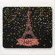 Add sofisticou a elegância parisiense a seu espaço de escritórios com um fundo preto contínuo do mousepad- da torre Eiffel do ouro do preto, do ouro e do rosa do rosa com os pontos dos confetes do ouro da folha do falso. Lê "Paris" na parte inferior na rotulação preta, elegante do estilo do art deco. O falso brilha, torre Eiffel cor-de-rosa na moda do rosa do ouro é caracterizado. Nota: Todas as imagens são imprimidas. Confetes, folha, ou brilho nao real. Dê um presente glam feminino para ela que será usada não somente, mas apreciado. Presente do divertimento para viajantes do wanderlust e a decoração feminino à moda do escritório.