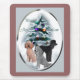 Um negro, uma prata e um poodle de damasco estão se posando em frente a uma árvore de Natal da floresta. Presentes maravilhosos.