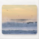 O por do sol com ondas deixando de funcionar e os pássaros que voam em Rockaway encalham em Pacifica, Calfiornia