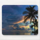 Cores excitantes do por do sol nos Bahamas com uma palmeira no primeiro plano