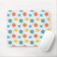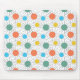 Este mouse pad tem um médio de círculos modernos do século design com linhas atrás em laranja, amarelo, turquesa e verde.