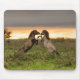 Mousepad com os dois cavalos selvagens prancing de Konik no por do sol no parque nacional Oostvaardersplassen nos Países Baixos.