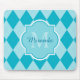 Mousepad Preppy Turquoise Argyle Girly Monograma e Nome