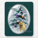 Arte de Natal refinada com um adorável cairno terrier em frente a uma árvore de Natal carregada de neve decorada com ornamentos que parecem brilhar à luz da lua. Presentes maravilhosos para amantes do Cairn terrier.
