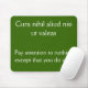 Um tapete de rato verde com texto latino e a tradução para o inglês por baixo. "Preste atenção a nada, exceto que você faça bem", basicamente, faça o seu melhor e não se preocupe com mais nada.