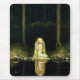 Princesa Tuvstarr com cabelos longos, loiros e ondulantes sentados na floresta, olhando para baixo para seu reflexo nas águas escuras. Linda aquarela de John Bauer. Ilustração para o conto folclórico sueco "A história de Skutt, a alce e a pequena Princesa Tuvstarr", escrito por Helge Kjellin em 1913.