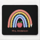 Este mouse pad de professor apresenta um arco-íris colorido pastel fofo acentuado com um lápis e uma maçã vermelha. O fundo é preto, o que oferece um contraste ousado com o arco-íris colorido. Personalize com o nome do professor.