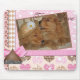Par de cachorros de recuperação de ouros em quadros cor-de-rosa.