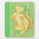 Um gato de mesa amarelo feliz rolando sobre a grama no sol. Mousepad com um design personalizável amarelo, laranja, verde, branco e azul para você personalizar com seu próprio texto, imagens e ideias. Um lápis original colorido de Jess Perry.