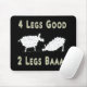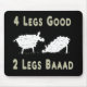 Duas ovelhas engraçadas ilustram a famosa frase "quatro pernas boas, duas pernas ruins" da Fazenda Animal de George Orwell. Concebido para mostrar a diferença entre os animais revolucionários (bons) e os mestrados humanos (maus), o humor é introduzido por uma das ovelhas com apenas duas pernas. Excelente para comer erva - não tão bom se você precisa mudar para outra pastagem. Literatura, significado e um desenho animado de ovelha.