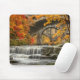 Lindas cores do outono nas árvores moldam esta queda-d'água ampla. A cachoeira é chamada Quarry Rock Falls e é encontrada na Reserva de Chagrin Sul dos Metroparques de Cleveland Ohio.