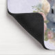Mouse pad with a sweet and adorable watercolor image. A bunny rabbit with white and gray fur. A garland of carnation flowers in pastel colors of pink and peach. A cute Easter, birthday or baby shower image for bunny rabbit lovers.
