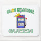Esta é sua camisa afortunada nova! Um slot machine temático colorido da cereja selvagem com uma coroa da rainha na parte superior & na frase, do "a rainha slot machine," escrito acima & abaixo no cinza do divertimento/dinheiro esboçou a pia batismal com uma moeda de ouro no lugar do "O" no entalhe da palavra. Camisa perfeita a vestir-se ao casino!